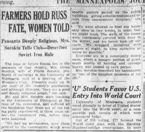 Helen Sorokin lecture – Minneapolis Journal 12-9-1925